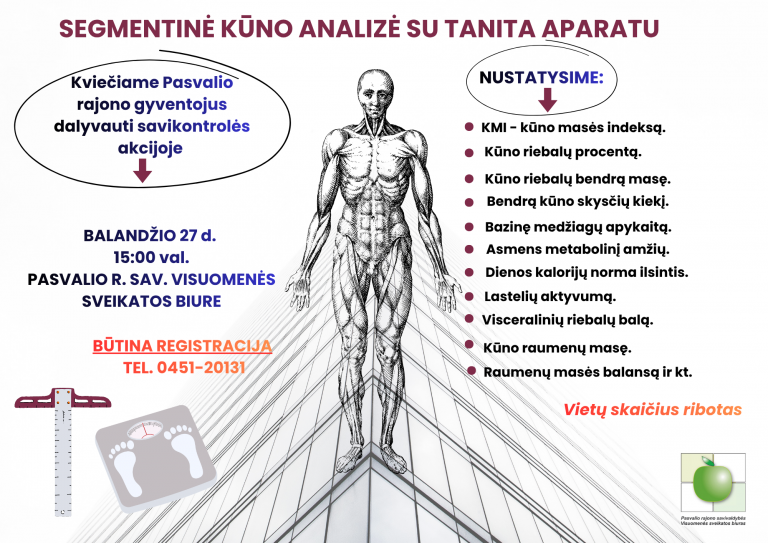 2026 m. kovo 30 d. Pasvalio psichikos dienos stacionaro nariai turėjo galimybę išbandyti naujai Pasvalio rajono savivaldybės visuomenės sveikatos biuro įsigytą kūno sudėties analizatorių su programine įranga Tanita PRO (GMON Professional). Užsiėmimo metu dalyviams buvo atliekami kūno kompozicijos matavimai, kurių…