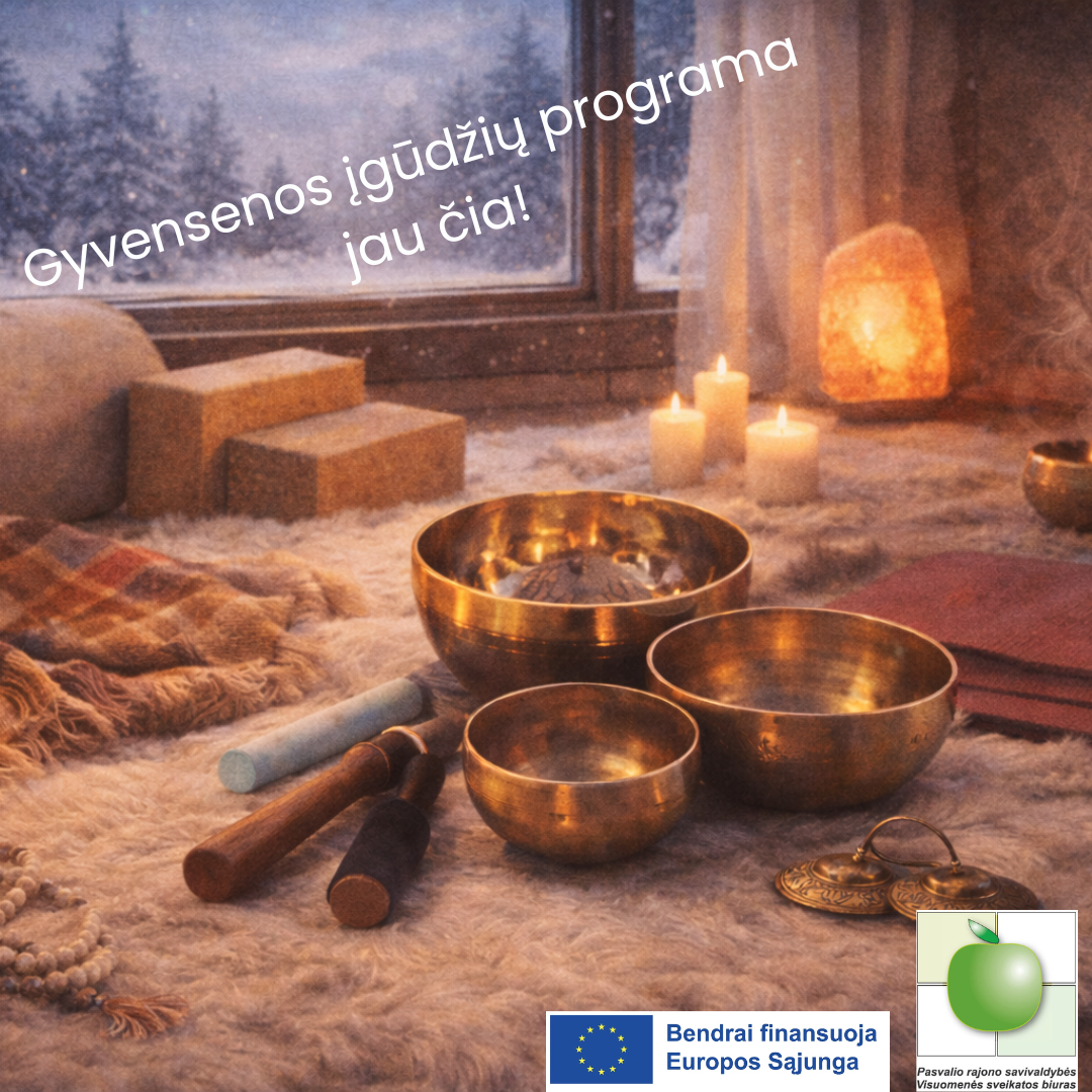 Užsiėmimai vyks Pasvalio r. sav. Visuomenės sveikatos biure, Vytauto Didžiojo a. 6, Pasvalys (kontaktiniu ir nuotoliniu būdu)