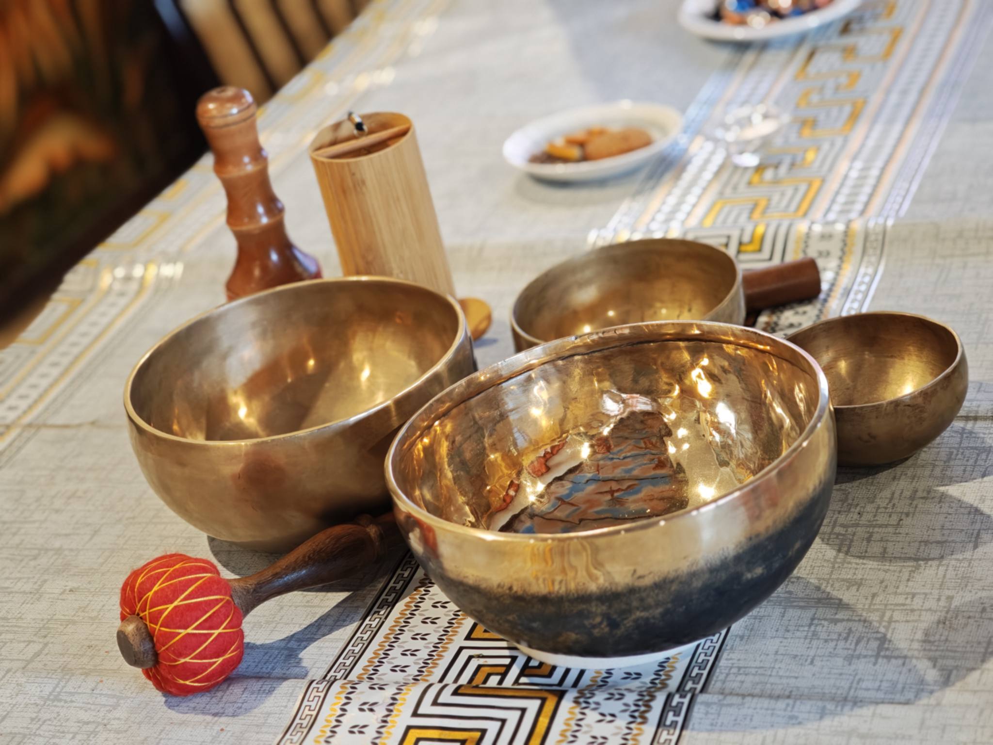 • garsų terapiją, leidžiančią panirti į vibracijų kuriamą ramybės lauką.