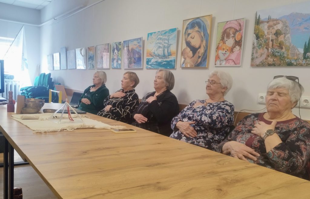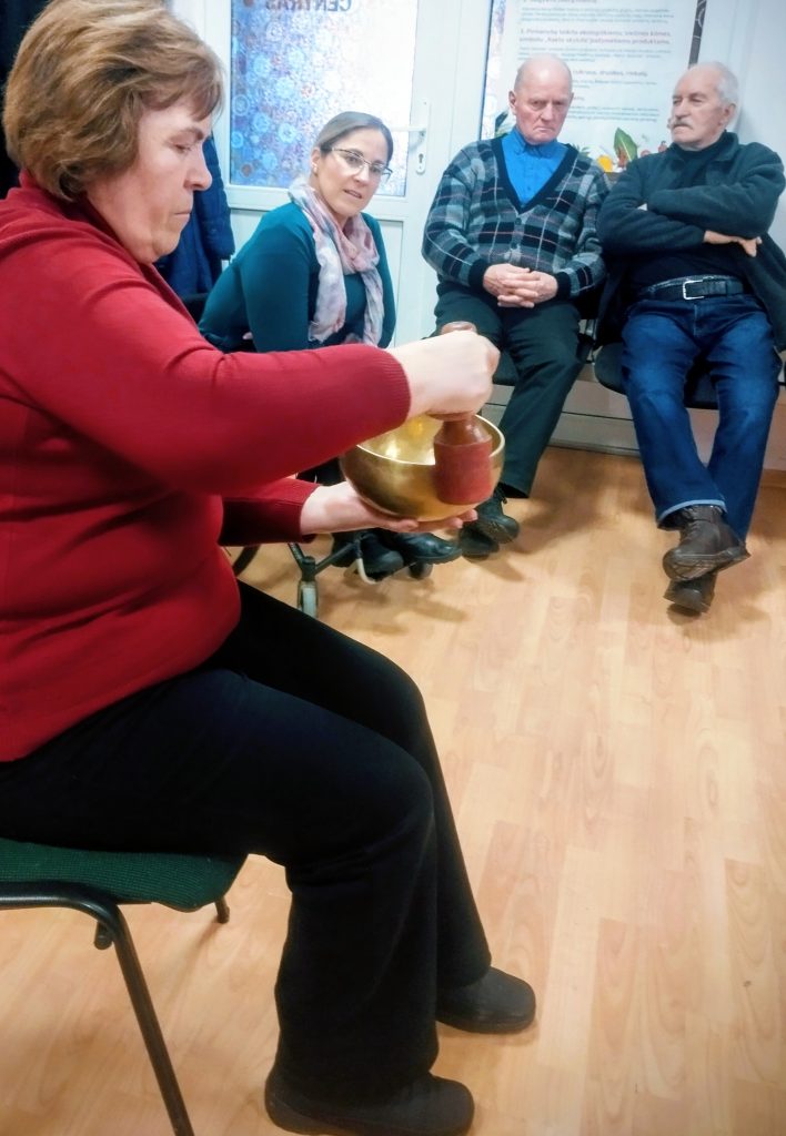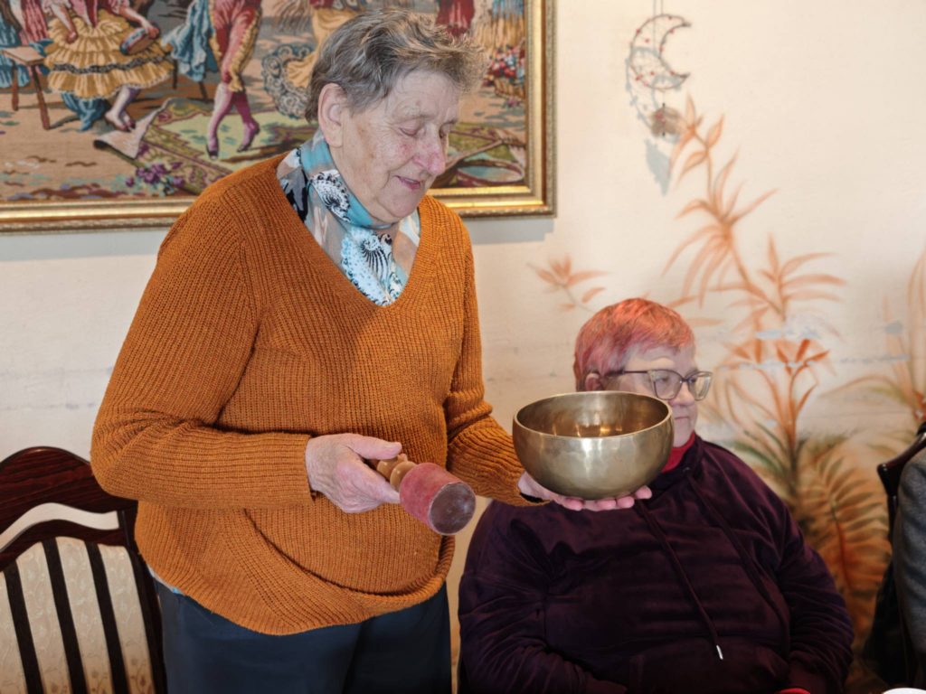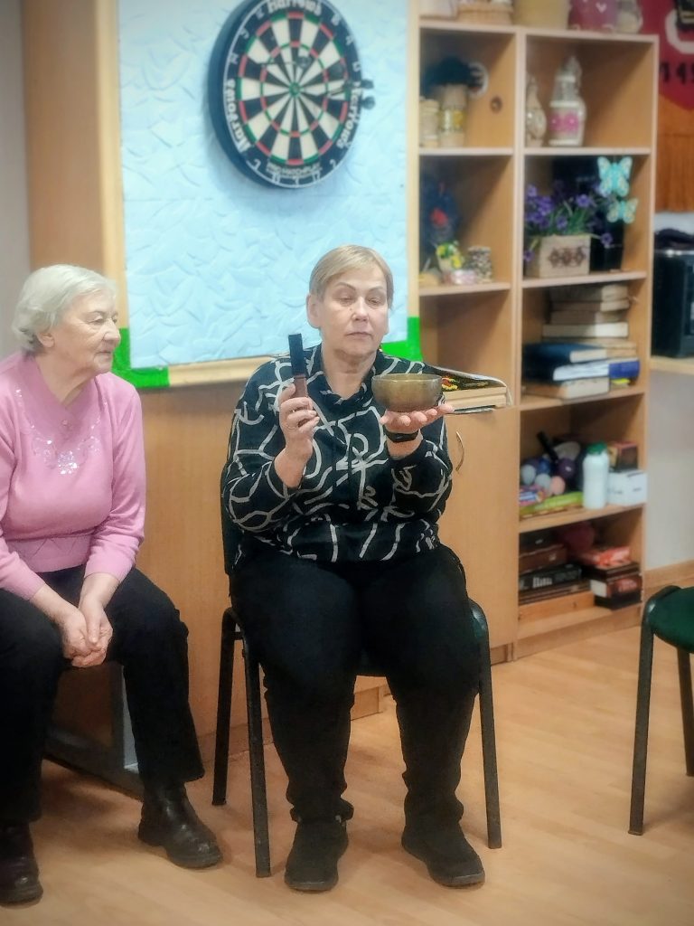Juoko terapija suvienijo grupę – net tie, kurie pradžioje jautėsi nedrąsiai, netrukus įsitraukė ir šypsenos užpildė visą erdvę. O garsų terapija tapo ypatinga patirtimi: dalyviai galėjo ne tik klausytis, bet ir susipažinti su instrumentais, juos išbandyti, pajusti jų skleidžiamas vibracijas kūne. Tai buvo galimybė patirti tylą, ramybę ir vidinį susitelkimą.