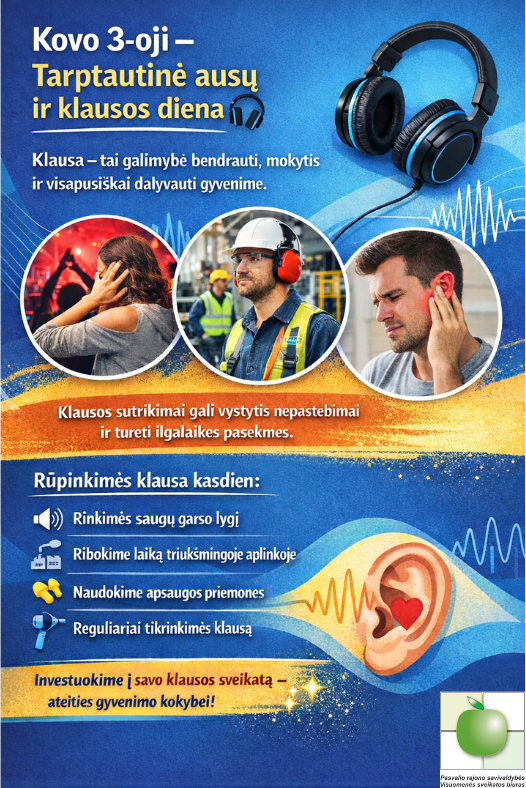 Rūpindamiesi klausa šiandien, saugome savo gebėjimą bendrauti, dirbti ir džiaugtis gyvenimu ateityje.