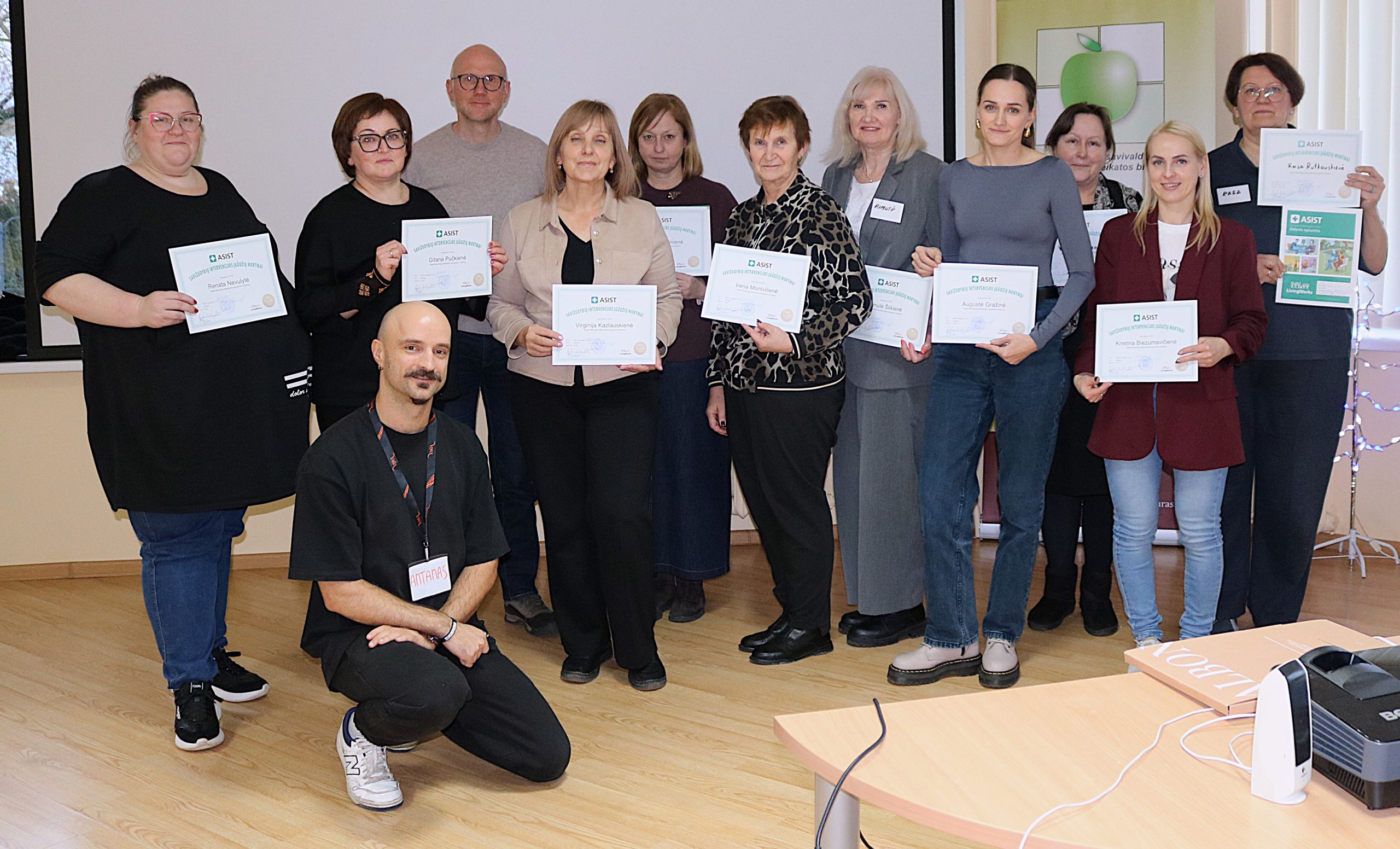 Dalyviams, aktyviai įsitraukusiems visą mokymų laiką, buvo suteiktas tarptautinis LivingWorks ASIST pažymėjimas.