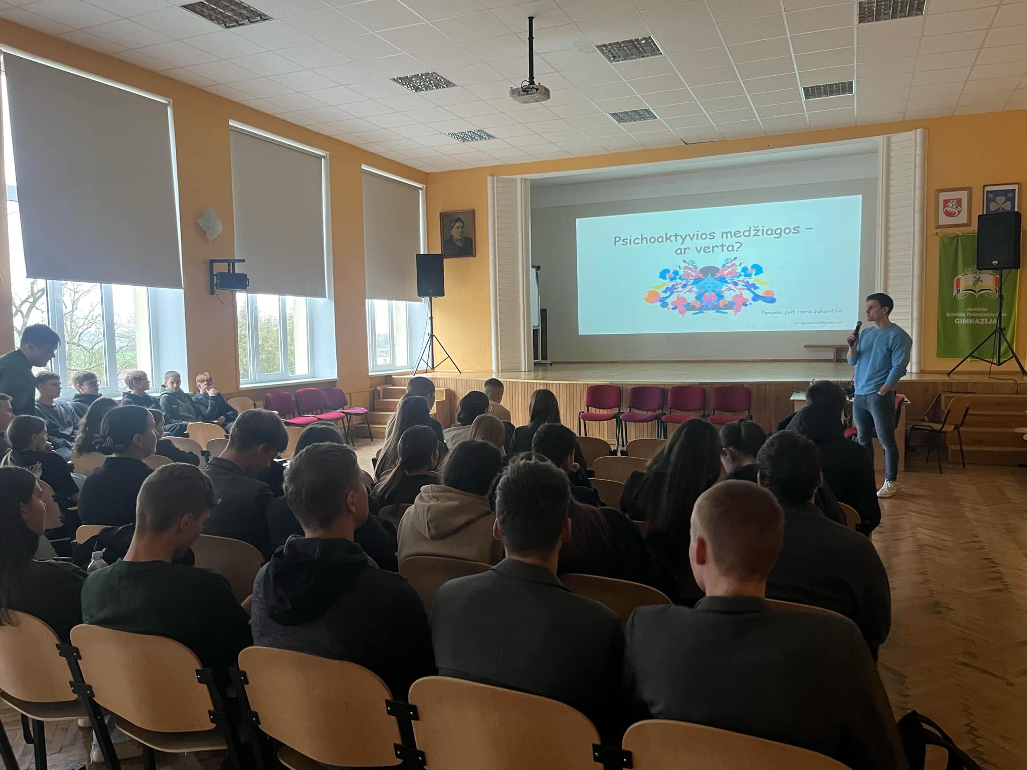 Renginių metu moksleiviai buvo ne tik klausytojai, bet ir aktyvūs dalyviai, smalsiai įsitraukė į aktualią temą – psichoaktyvių medžiagų poveikį ir prevenciją.