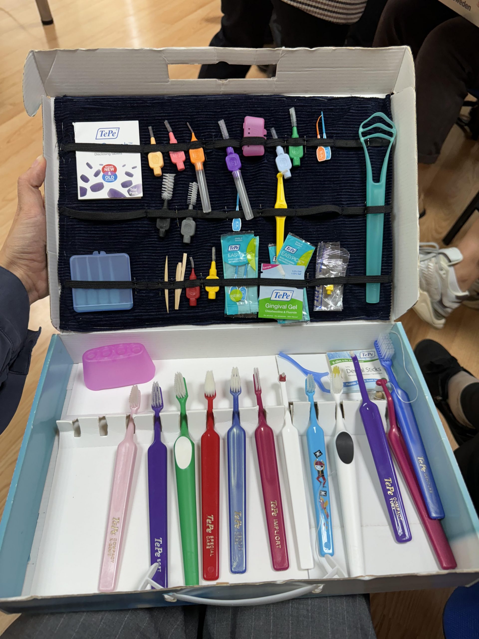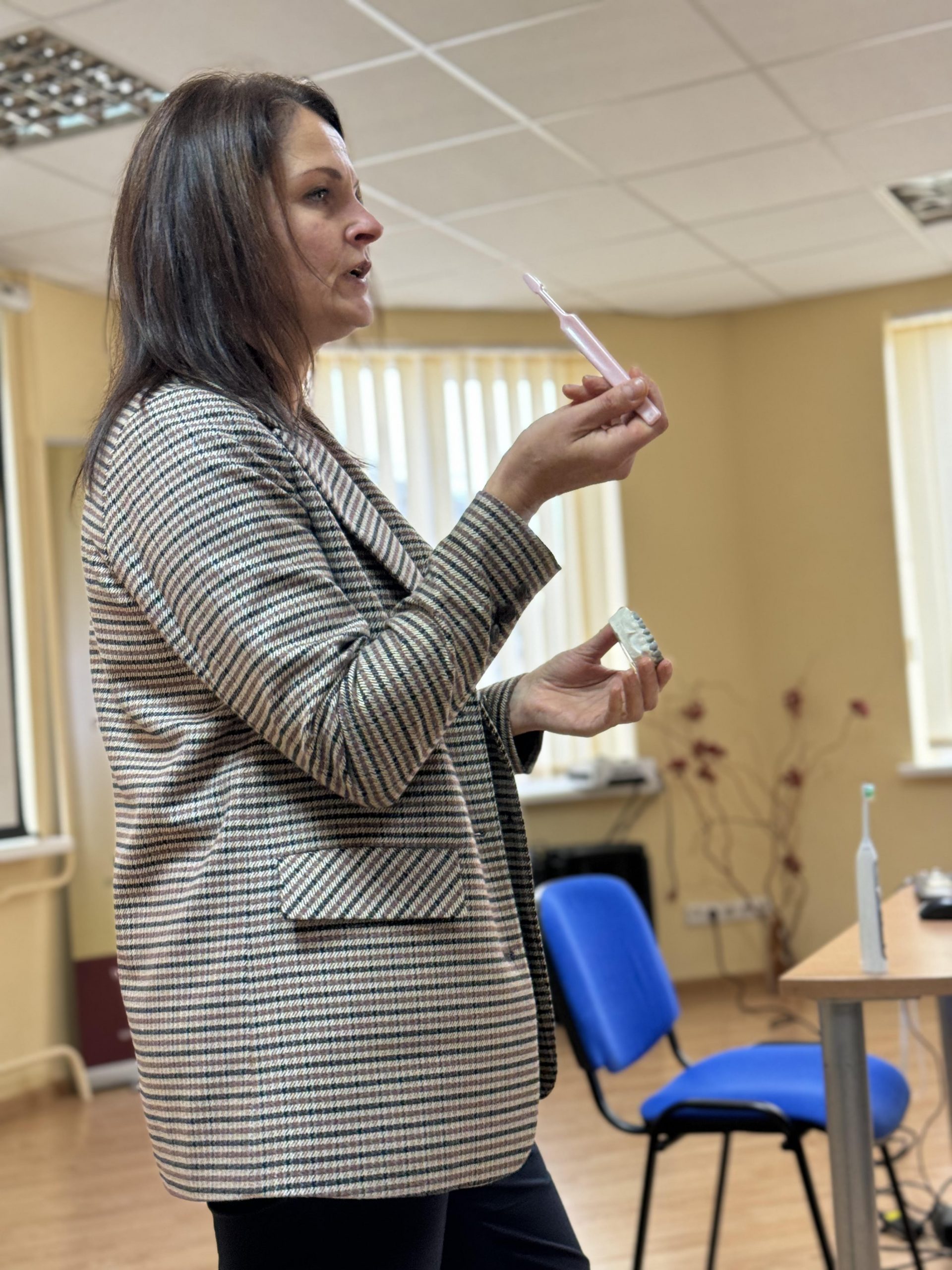 Paskaitos metu specialistai gavo praktiškai išbandyti naujausias burnos higienai skirtas priemones, prisiminė taisyklingą dantų valymo seką, sužinojo, kokios rekomendacijos/kiekiai turi būti pastose su fluoru pagal vaikų, paauglių amžių ir dantų būklę.