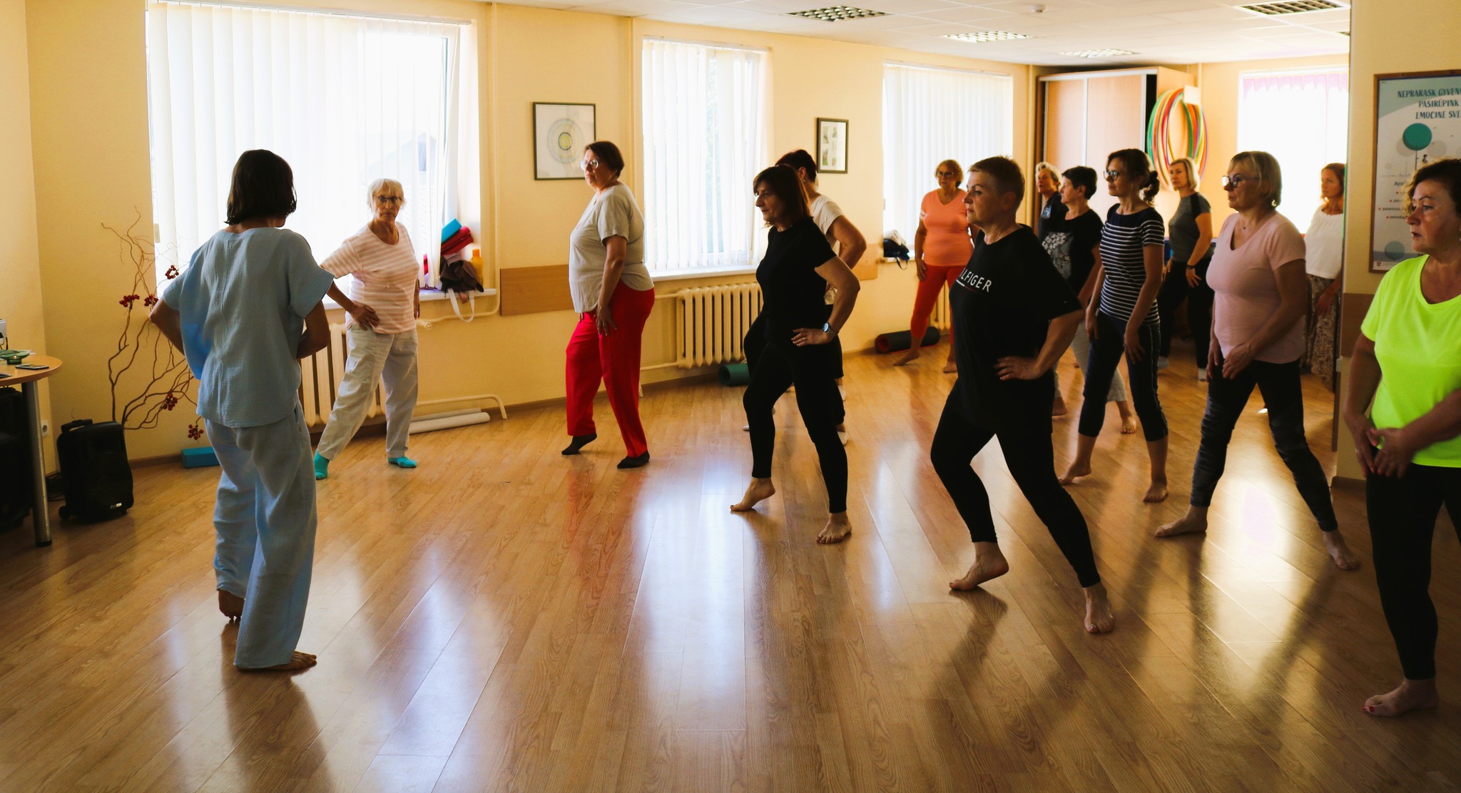 Besirūpinantys savo sveikata sekmadienį rinkosi į Rasos Paulauskienės, ilgametės universitetinių sporto programų dėstytojos iš Vilniaus, judesio ir kvėpavimo praktinį susitikimą. Jo metu lektorė dalijosi kitokia, netradicine judesio praktika, leisdama pajusti, jog laisvas judesys mus atpalaiduoja, padeda pasijusti lengviems. Susirinkusias moteris kvietė pastebėti visada šalia tekantį kvėpavimą, pajusti kvėpavimo ir judesio darną, geriau jausti kūno pojūčius, ugdyti sąmoningumą bei dėmesingumą.