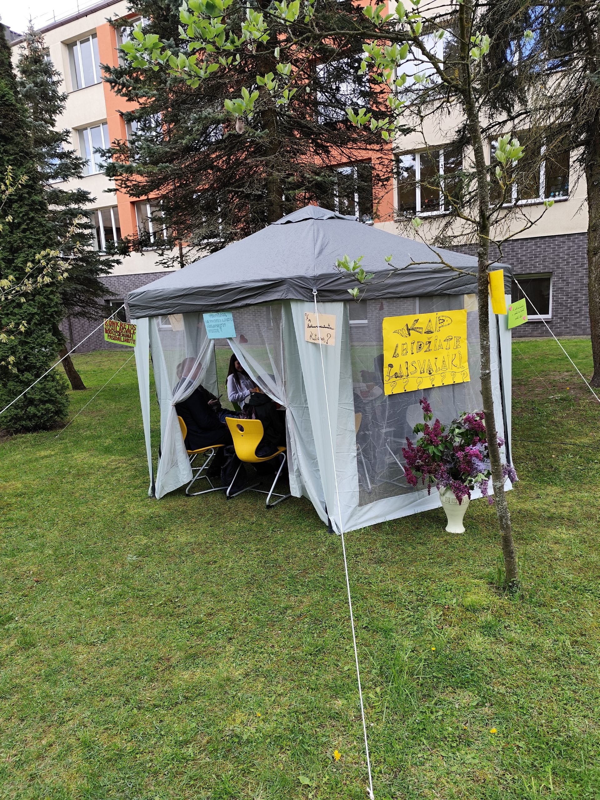 Pumpėnų gimnazijoje, jau tradicija tampančioje Mokyklos dienos šventėje, kūrybinių dirbtuvių metu pasirinkome mokinių laisvalaikio temą: jo svarbą, planavimo ypatumus ir su tuo susijusius sunkumus. Kūrybinių dirbtuvių ,, Kaip leidžiate laisvalaikį“ temą paskatino praplėsti 8 kl. mokinės Mantės, Pumpėnų gimnazijos radijuje, interviu metu, užduoti klausimai. Idėją aptarėme su mokytoja Diana Augustiniene ir IGa bei IGb klasių mokiniais. Kad šventė keltų džiaugsmą ir išvengtume streso, pasiruošimą kūrybinėms dirbtuvėms pradėjome iš anksto, apgalvojome visas smulkmenas, vengėme paskutinės minutės skubėjimo. Mokyklos aplinka ir oro sąlygos įtakojo renginio idėjos išpildymą, todėl renginys vyko palapinėje. Mokiniai aktyviai prisidėjo prie sumanymo įgyvendinimo. Palapinę puošė autentiški, ranka rašyti IGa kl. Ugnės, Vestos, Igno, Amandos, Rusnės ir IGb kl. Gabijos, Tijos, Akvilės mokinių plakatai. Pagrindinį, teminį plakatą piešė IIIG klasės mokinys Armandas. Palapinę dekoravo Lukas, Amanta, Ignas, Nojus, Arnas, Ugnė, Fausta. Erdvę įrengti padėjo Kajus, Ignas, Nojus ir kt.