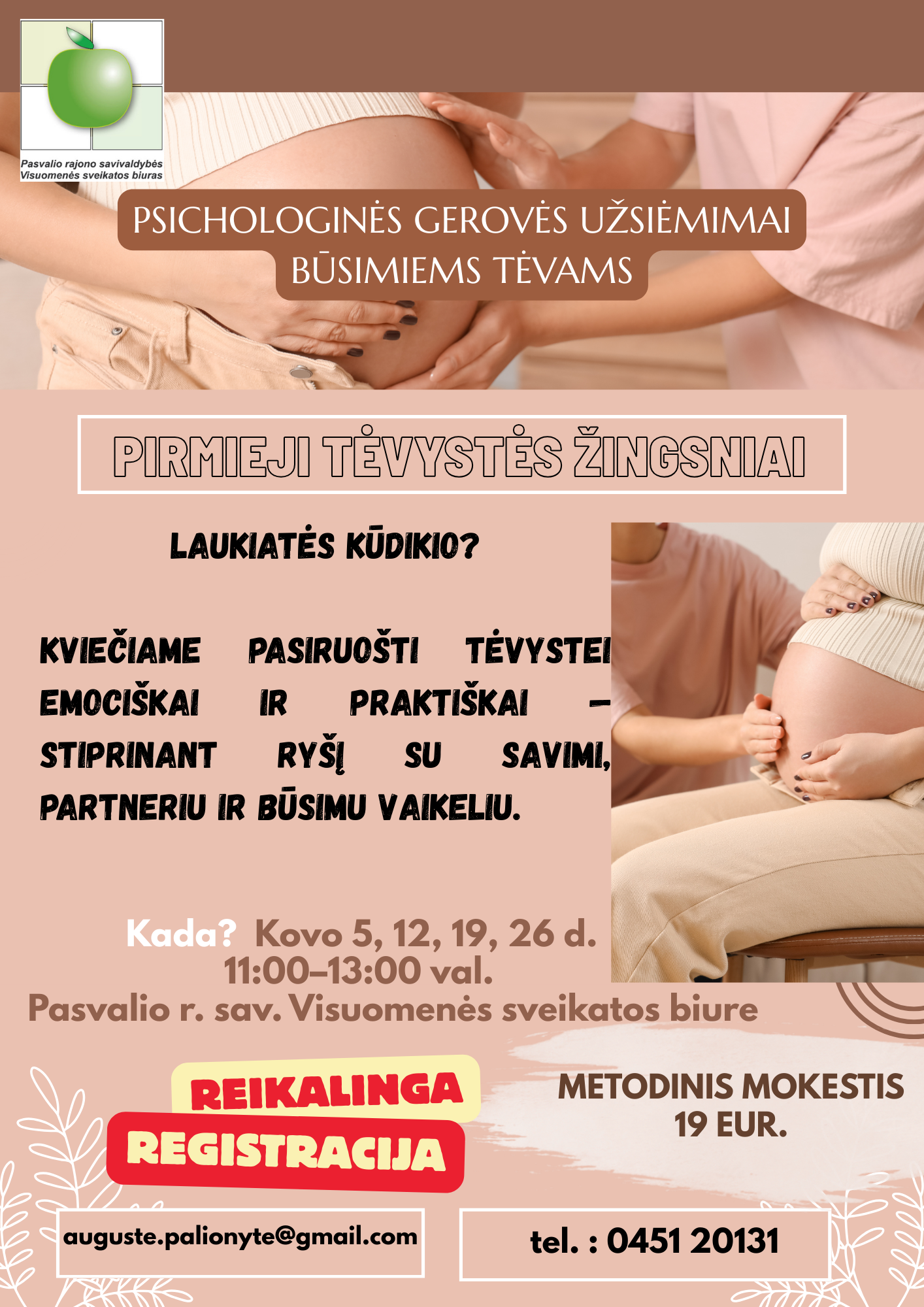 Kviečiame į psichologinės gerovės užsiėmimus būsimiems tėveliams: „Pirmieji tėvystės žingsniai“