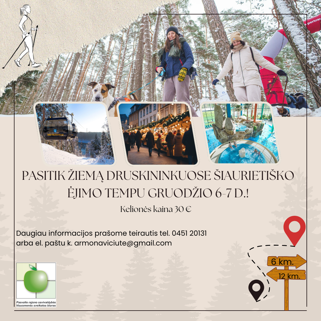Kviečiame visus šiaurietiško ėjimo entuziastus — tiek pradedančius, tiek patyrusius žygeivius — kartu atverti žiemos sezoną Druskininkuose! ❄️