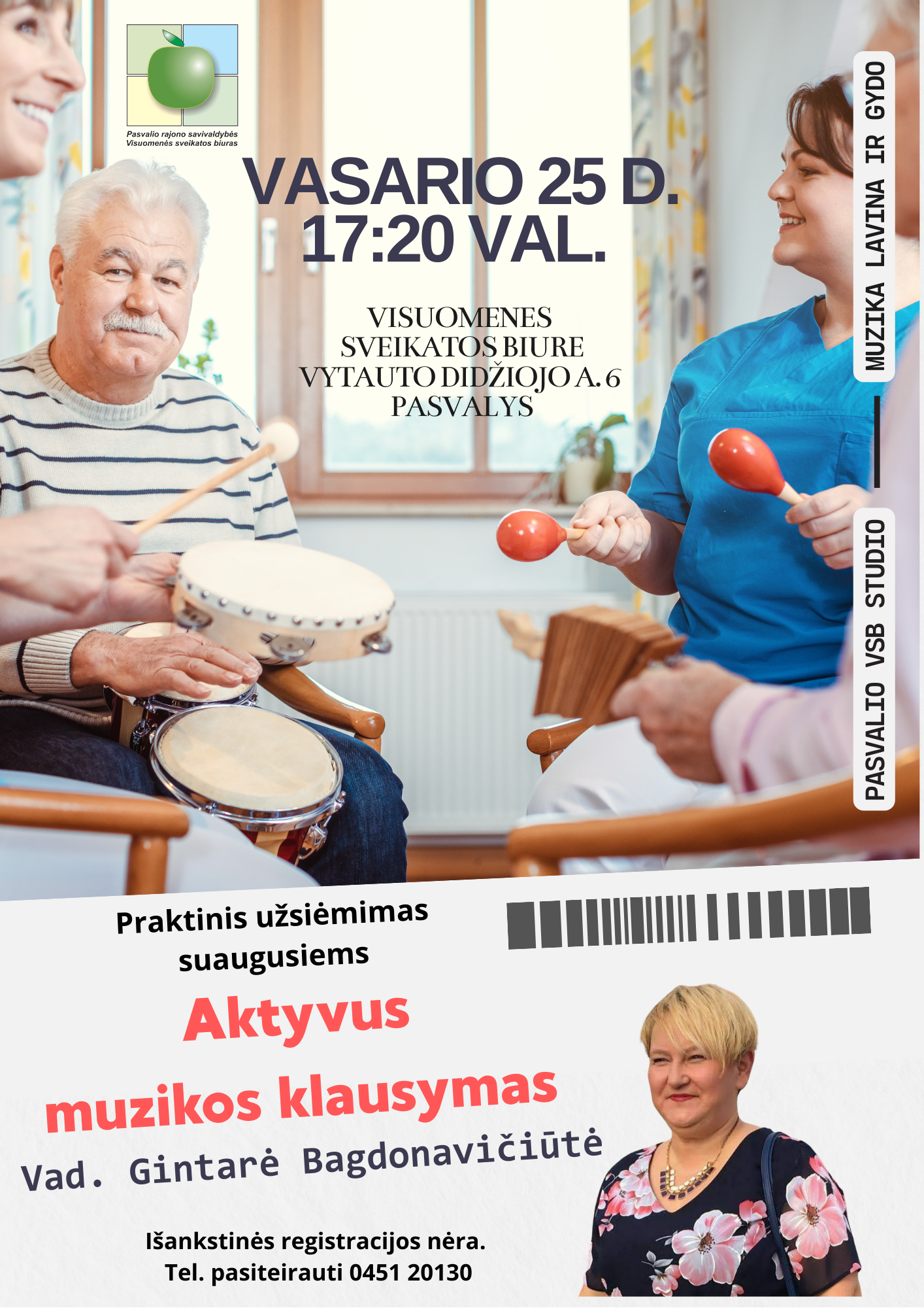 Laukiame Jūsų! Užsiėmimas vyks Pasvalio Visuomenės sveikatos biure, adr. Vytauto Didžiojo a. 6, III aukštas, Pasvalys.