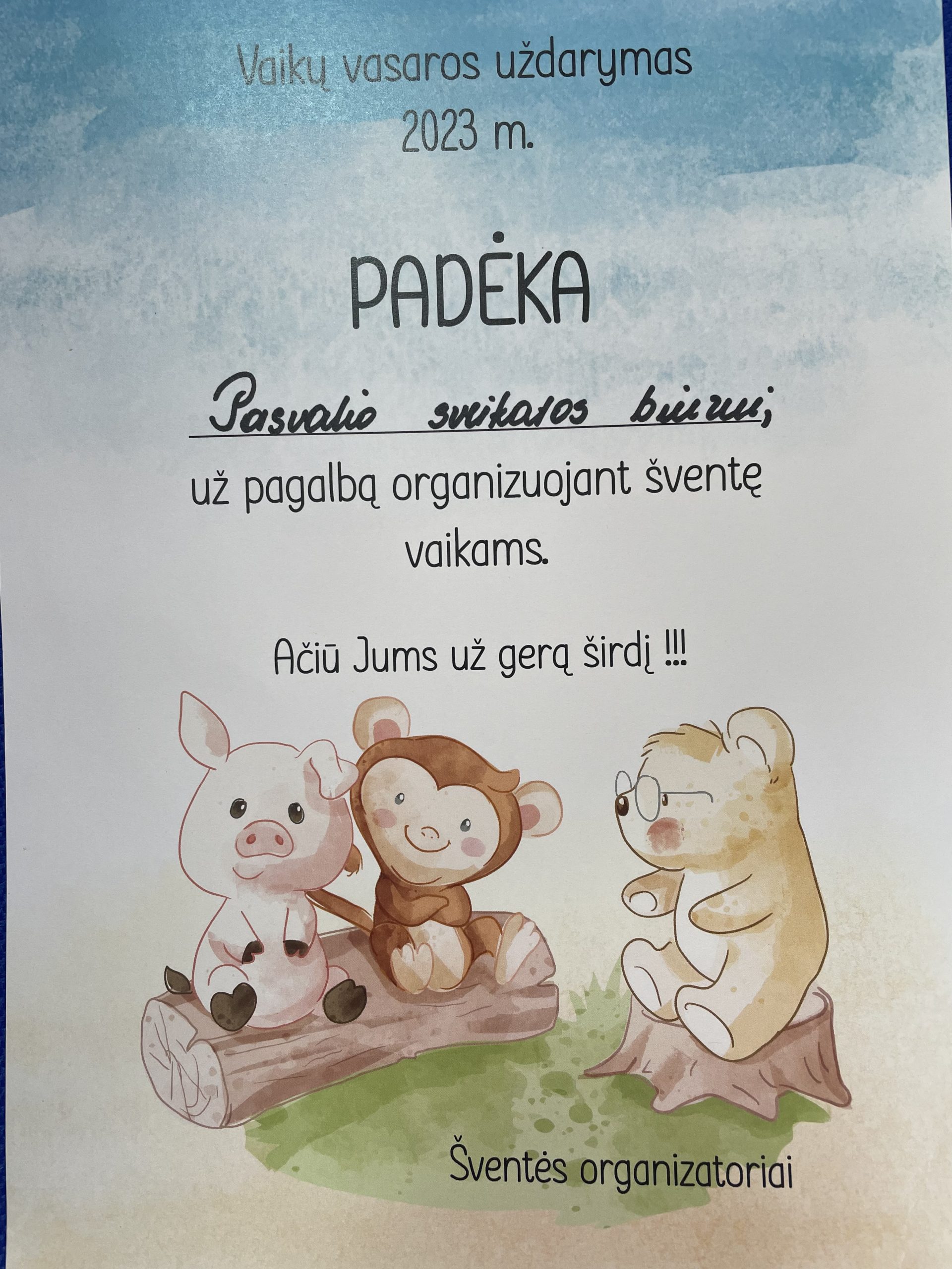 Rugpjūčio 22 d. Pasvalio smegduobių parke vyko vaikams surengta šventė „Vaikų vasaros uždarymas 2023 m. “. Šiltą ir gražią dieną netrūko vaikų šypsenų, linksmybių ant batutų, cukraus vatos, smagių žaidimų bei šokių. Gera ir smagu prisidėti prie gražių iniciatyvų, tad Pasvalio raj. vaikams Visuomenės sveikatos biuras suteikė galimybę aktyviai bei ritmingai pajudėi su Zumba trenere Aiste Ežerske. Mankšta muzikos ritmu tinkama įvairaus amžiaus žmonėms, todėl pašokti prisijungė ir maži ir dideli.