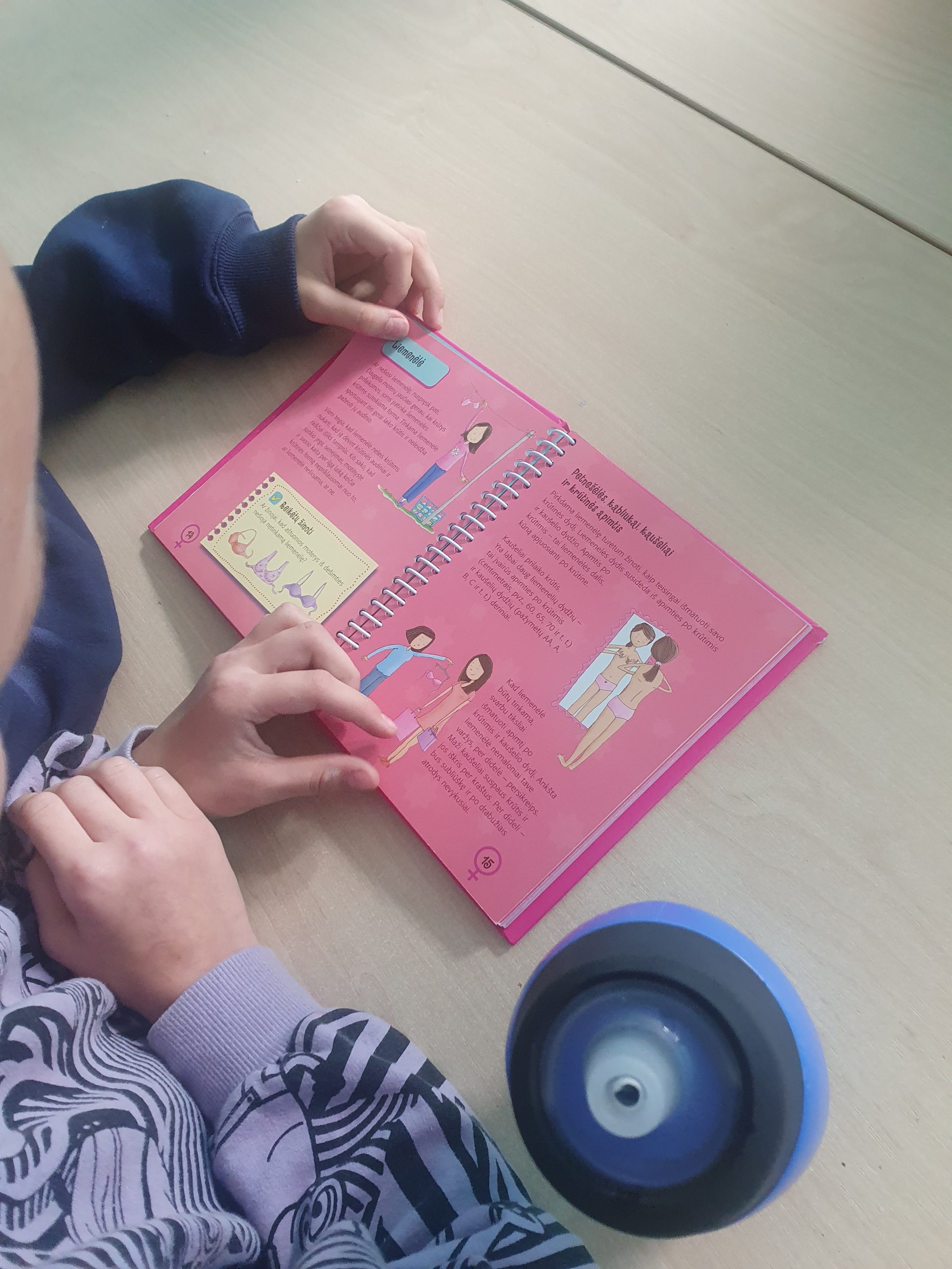 Specialistė mergaitėms papasakojo kas gi vyksta organizme brendimo laikotarpiu, kaip keičiasi žmogaus kūnas, išvaizda, emocijos. Pokalbio metu didelis dėmesys buvo skirtas temoms apie menstruacijas ir jų ciklą, higieną ir jos priemones.
