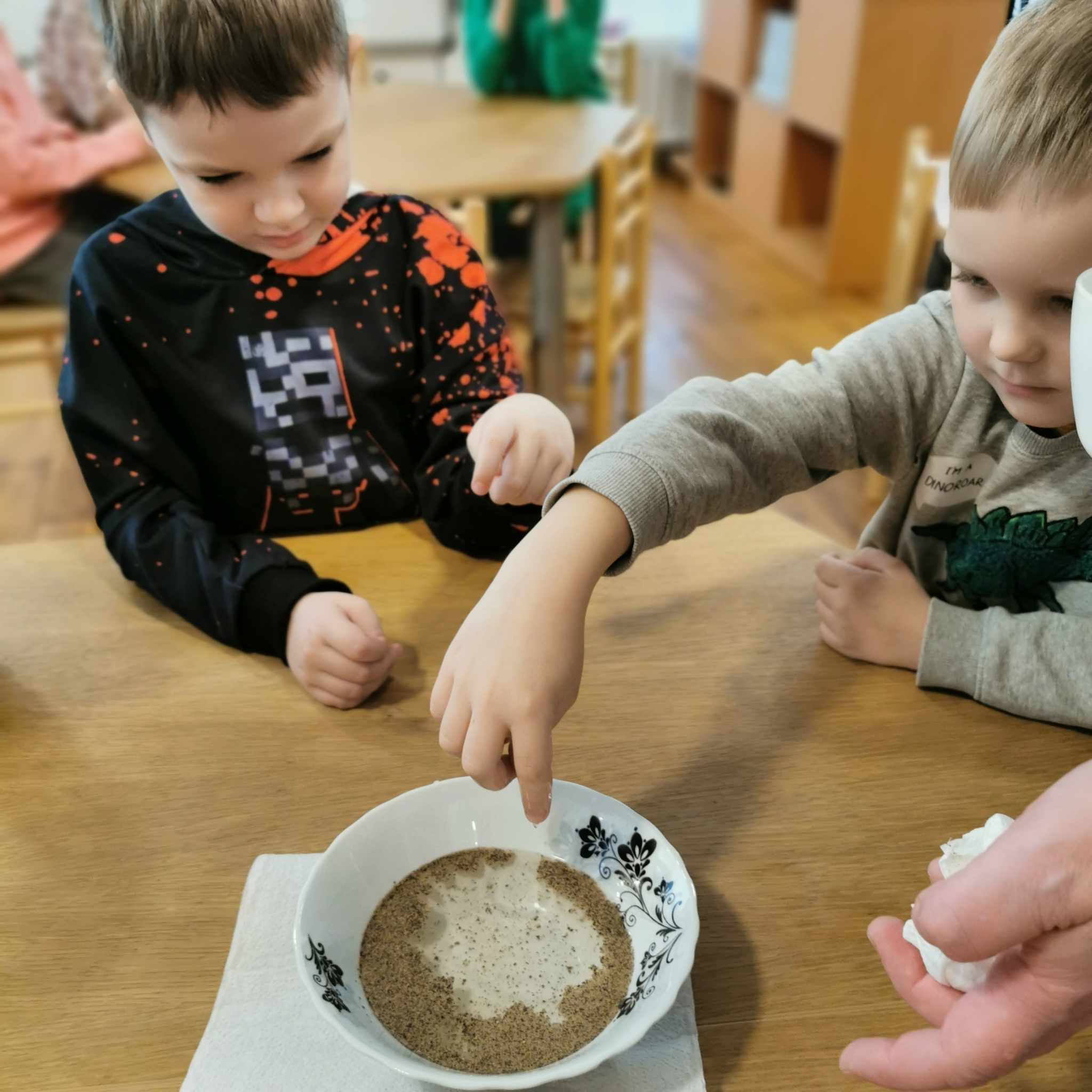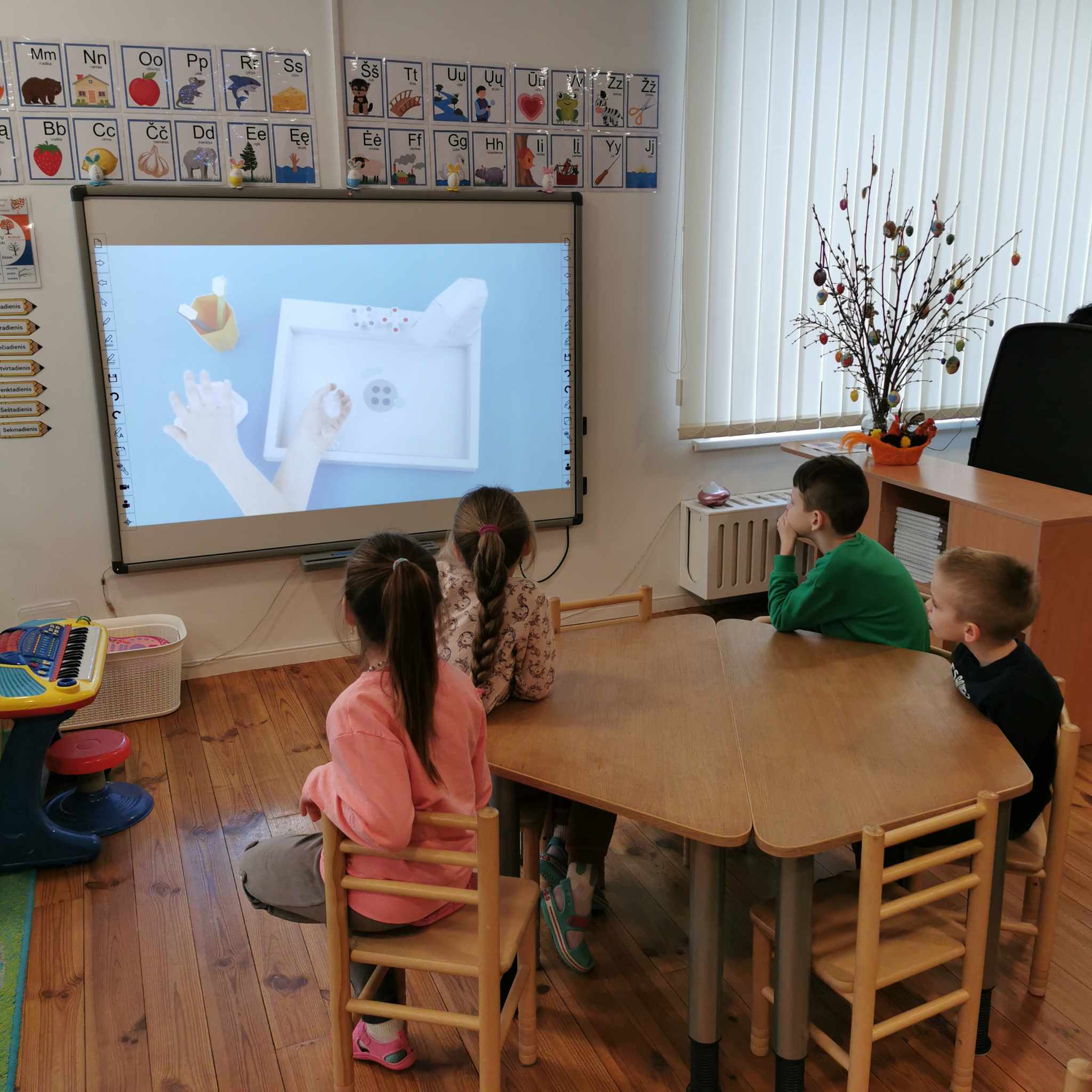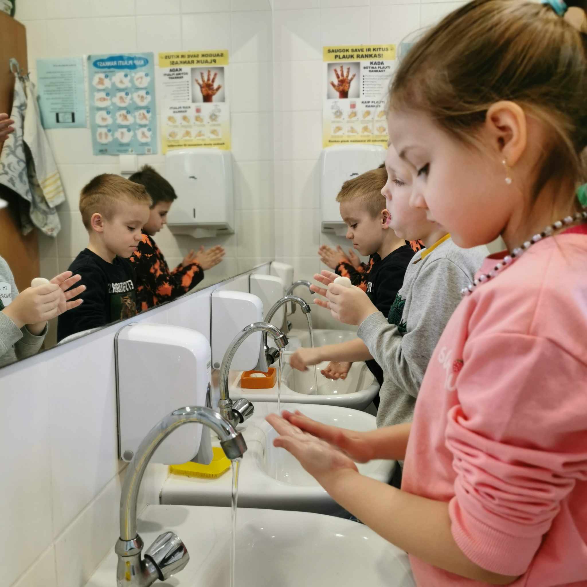 Edukacijos paįvairinimui visuomenės sveikatos priežiūros specialistė, vykdanti sveikatos priežiūrą mokykloje Dalia Kairytė – Ščepanovič kartu su vaikais atliko eksperimentą, kuris padėjo suprasti, kaip muilas padeda apsisaugoti nuo mikrobų ir kodėl svarbu laikytis tinkamos rankų higienos. Vaikams buvo priminta ir rankyčių plovimo taisyklės, kosėjimo ir čiaudėjimo etiketas.