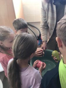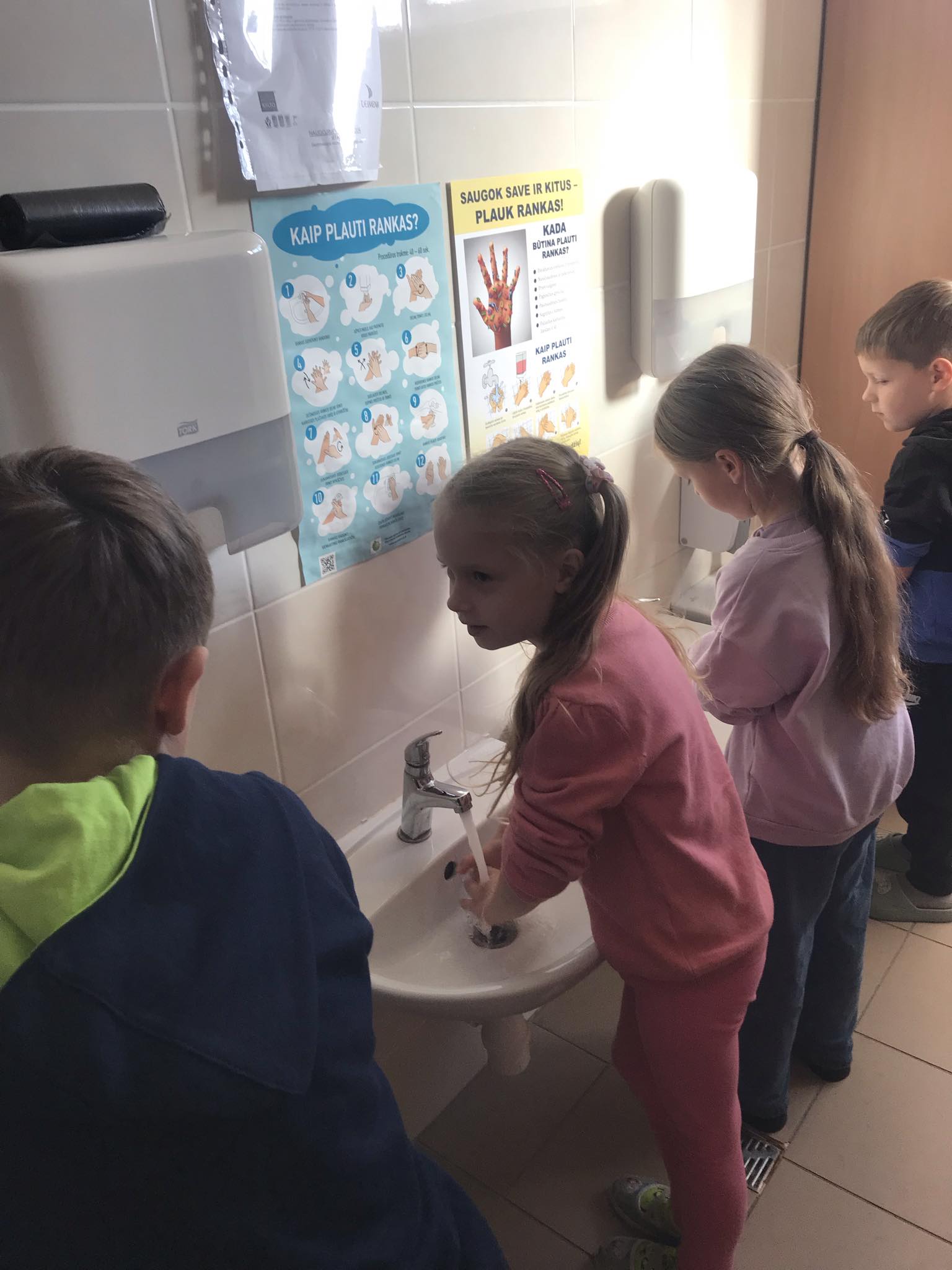 Vaikams ypač patiko „tikrintis“, kaip švariai jie nusiplovė rankas – kai kuriems teko pakartoti „procedūrą“. Vėliau vaikai spalvino paveikslėlius apie bakterijos kelionę. Visiems vaikams buvo išdalinti „Rankų plovimo dienoraščiai“, kad jie galėtų toliau stebėti ir fiksuoti savo rankų švaros įpročius namuose.