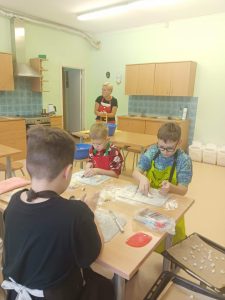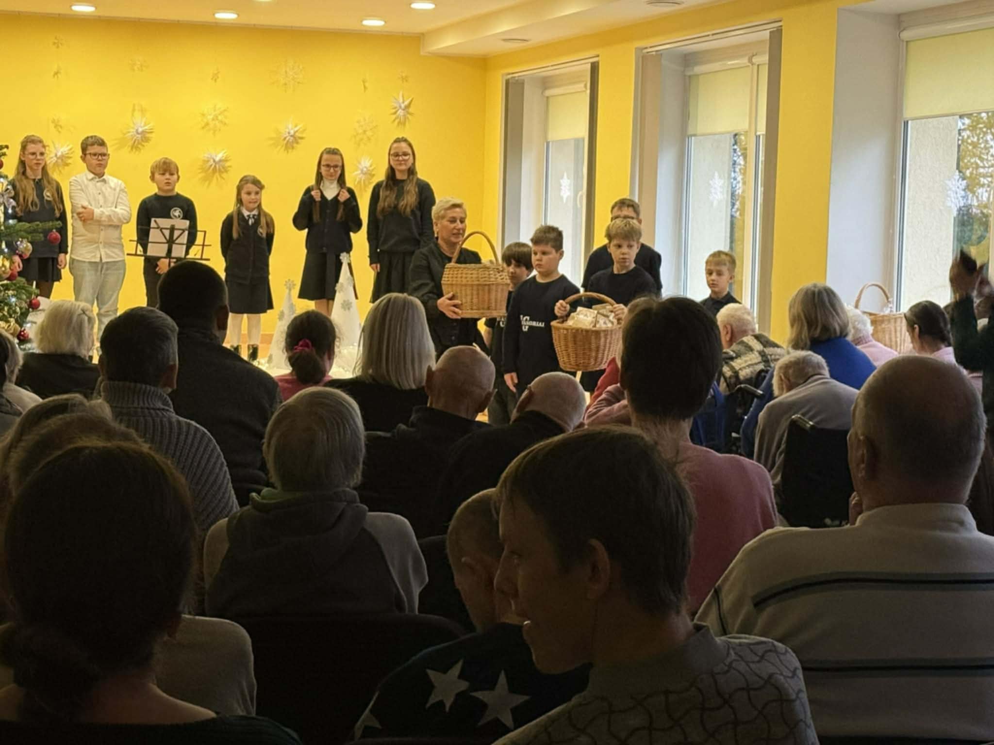Sustiprėję viduje, nusprendėme praverti mokyklos duris platesniam pasauliui. Paskatinti savanorių vadovės, mokytojos Jesenijos Marcinkonytės ir palaikomi tėvelių, pradinukai tapo „Maisto banko“ akcijos dalimi. Mažose rankose laikomos skrajutės prekybos centruose buvo daugiau nei popierius – tai buvo vaikų drąsa užkalbinti praeivį ir pakviesti padėti kitam. Matydami tėvelių palaikymą ir kartu ruošiamą tešlą kūčiukams, vaikai suprato, kad bendrystė prasideda šeimoje ir tęsiasi mokykloje. Vienas jautriausių mūsų etapų – apsilankymas Lavėnų socialinės globos namuose. Pačių kepti ir su meile supakuoti kūčiukai tapo tiltu tarp kartų.
