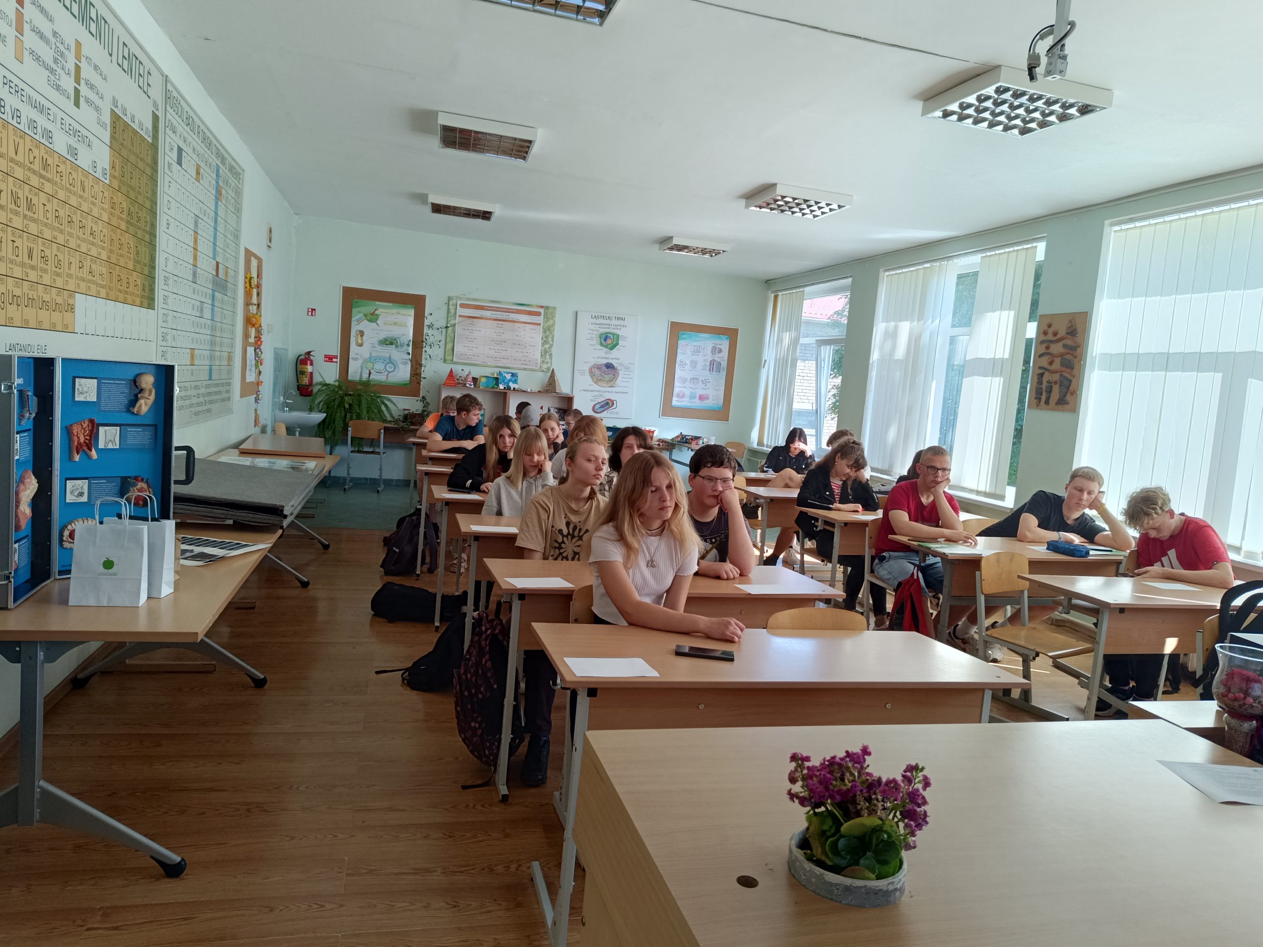 Vaškų gimnazijoje apie rūkymo žalą, psichotropinių ir kitų psichiką veikiančių medžiagų vartojimą, mitus ir priklausomybes su 6, 8 ir I gimnazijos klasių mokiniais integruotose biologijos pamokose, diskutavo visuomenės sveikatos priežiūros specialistė Birutė Jokubaitienė.