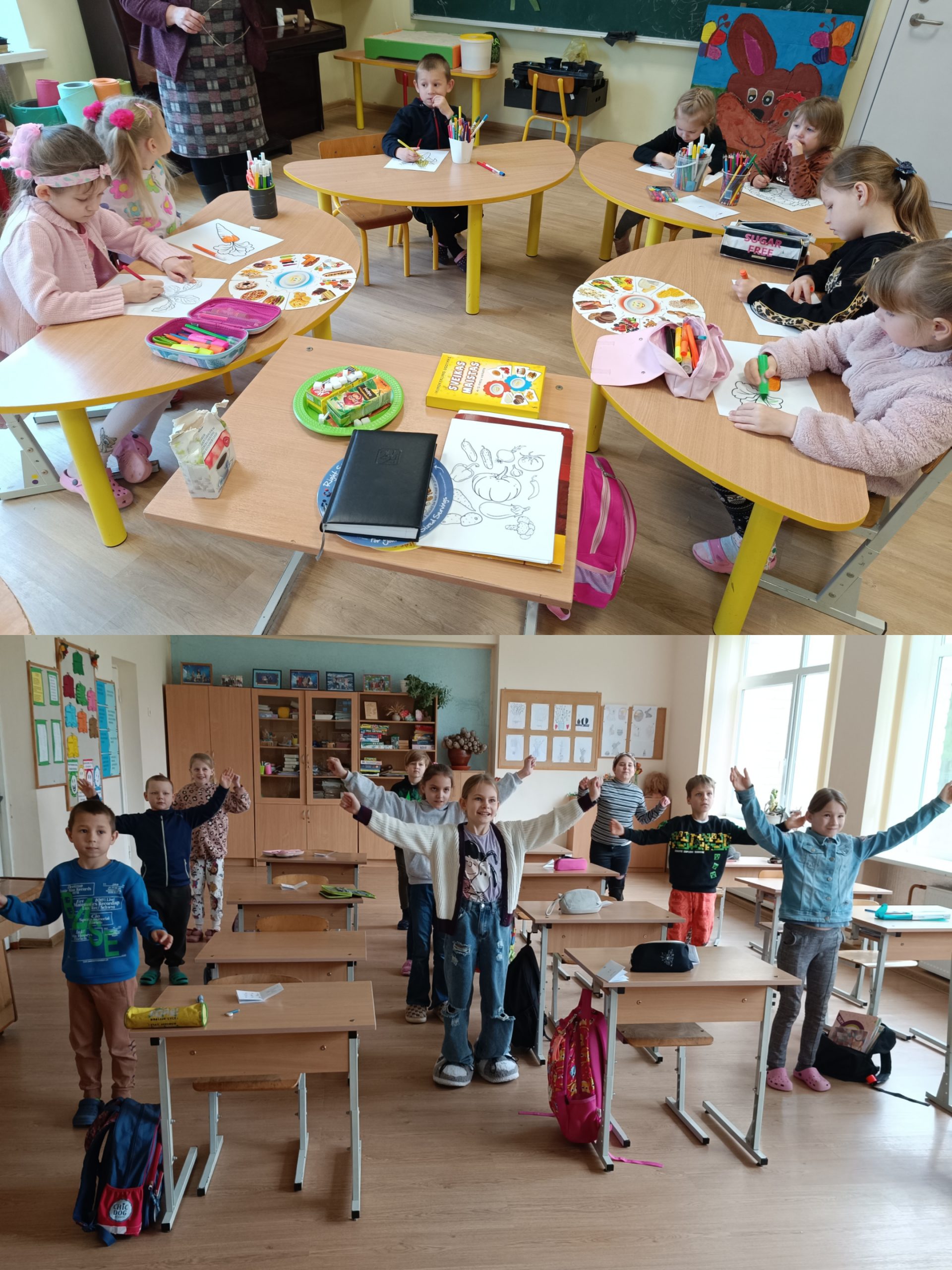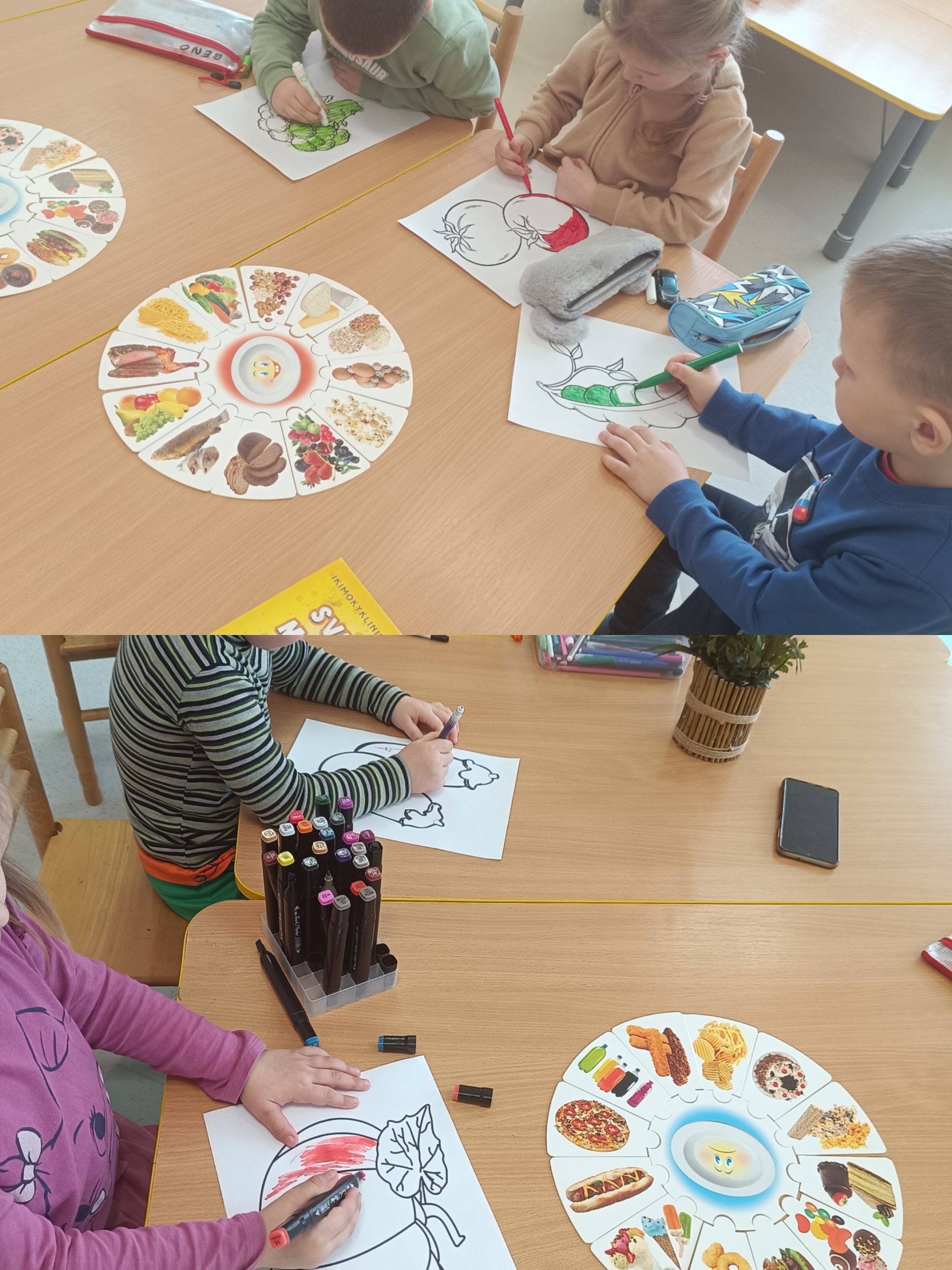 daržovių nauda organizmui, rūšiavo sveikatai palankų ir nepalankų maistą, mokėsi atpažinti daržoves, jas apibūdinti ir nuspalvinti.