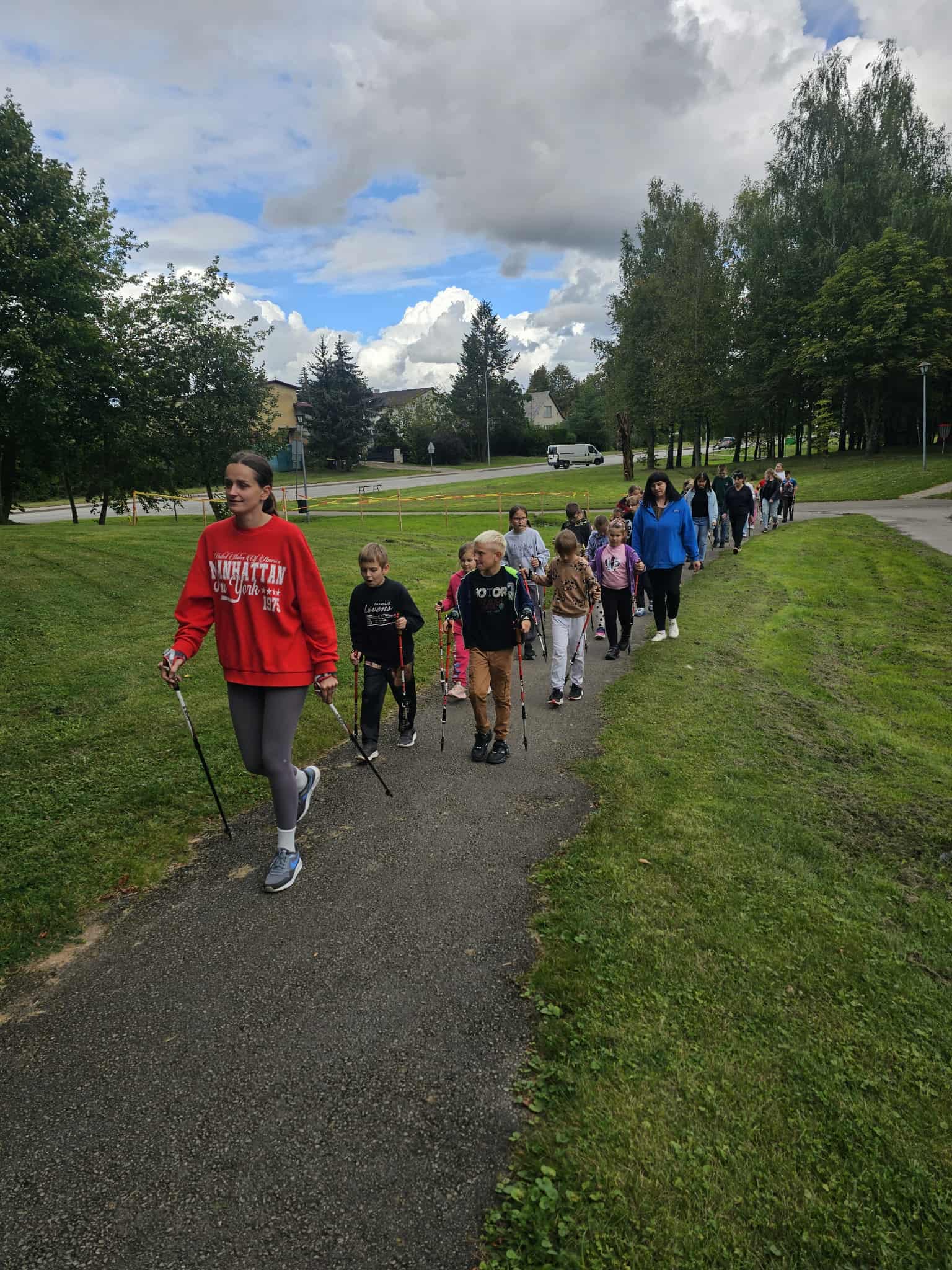 Pasvalio rajono savivaldybės Visuomenės sveikatos biuras kartu su gausiu Šv. Jono Krikštytojo parapijos vaikų dienos centro būriu leidosi į žygį šiaurietiškomis lazdomis