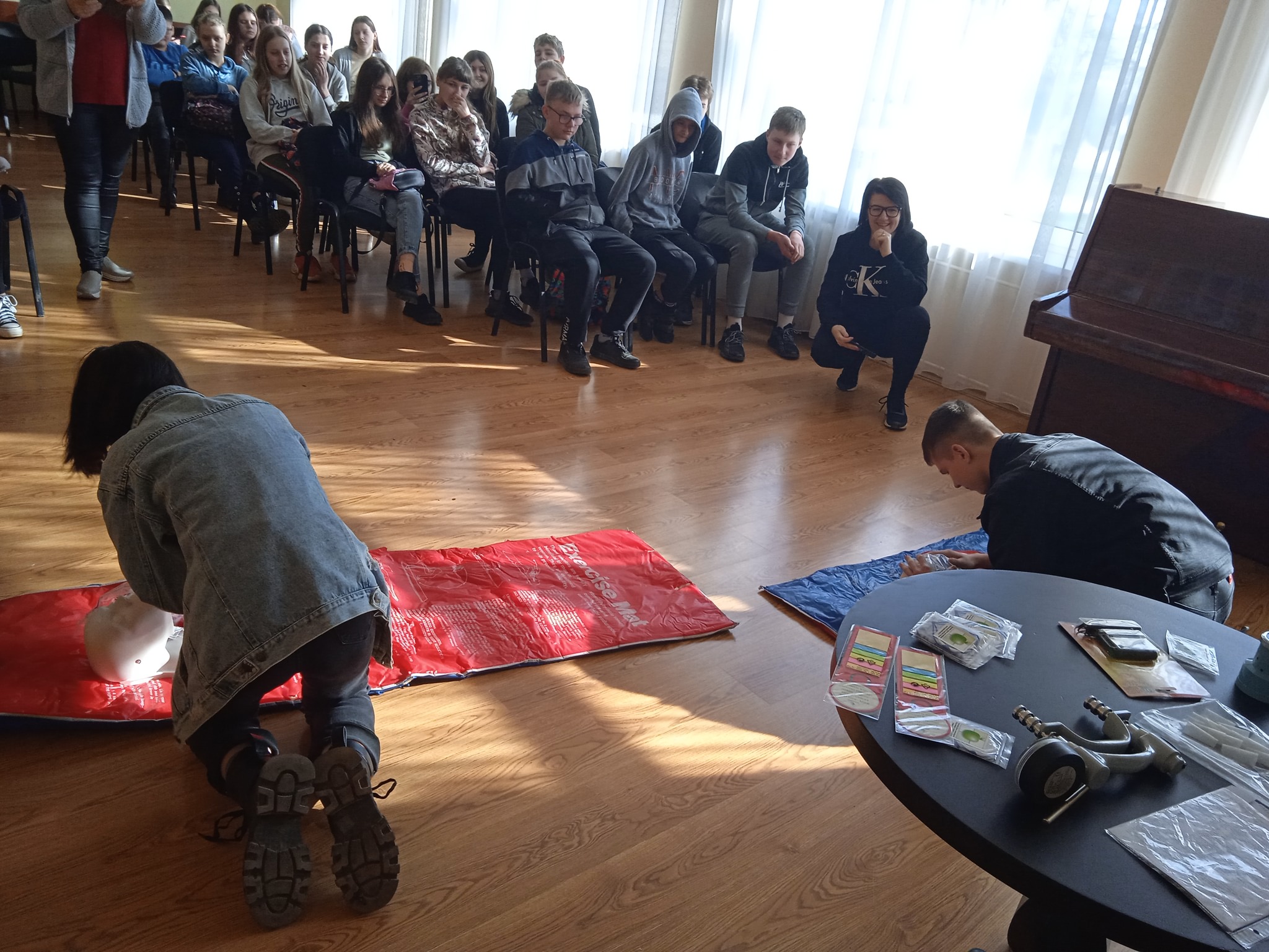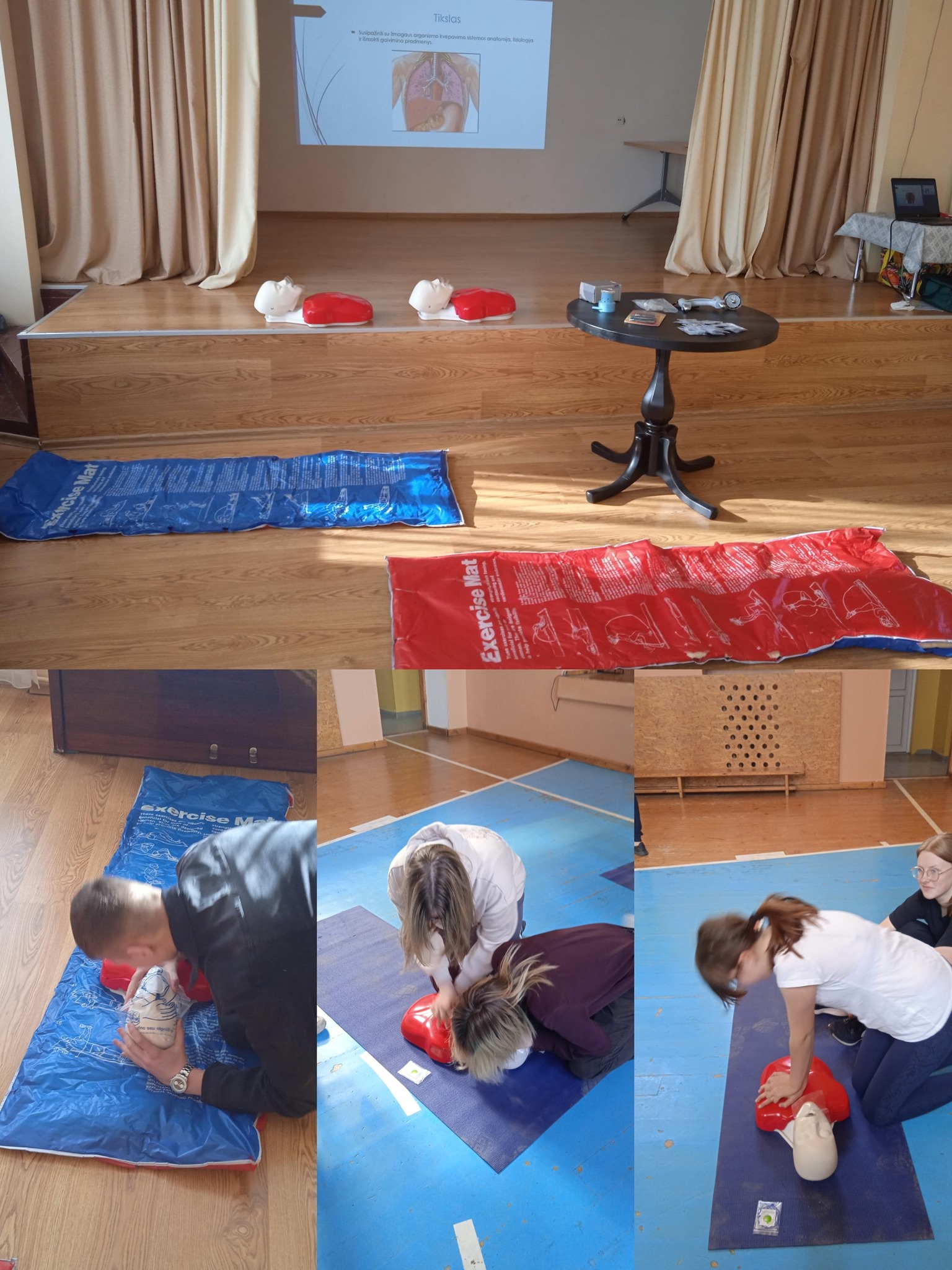Visi mokiniai išbandė pradinį gaivinimą ant muliažų ir suprato, kad tai nėra taip lengva, kaip atrodė pradžioje ir sužinojo, kad laiku suteikus pirmąją pagalbą, galime išgelbėti žmogaus gyvybę.