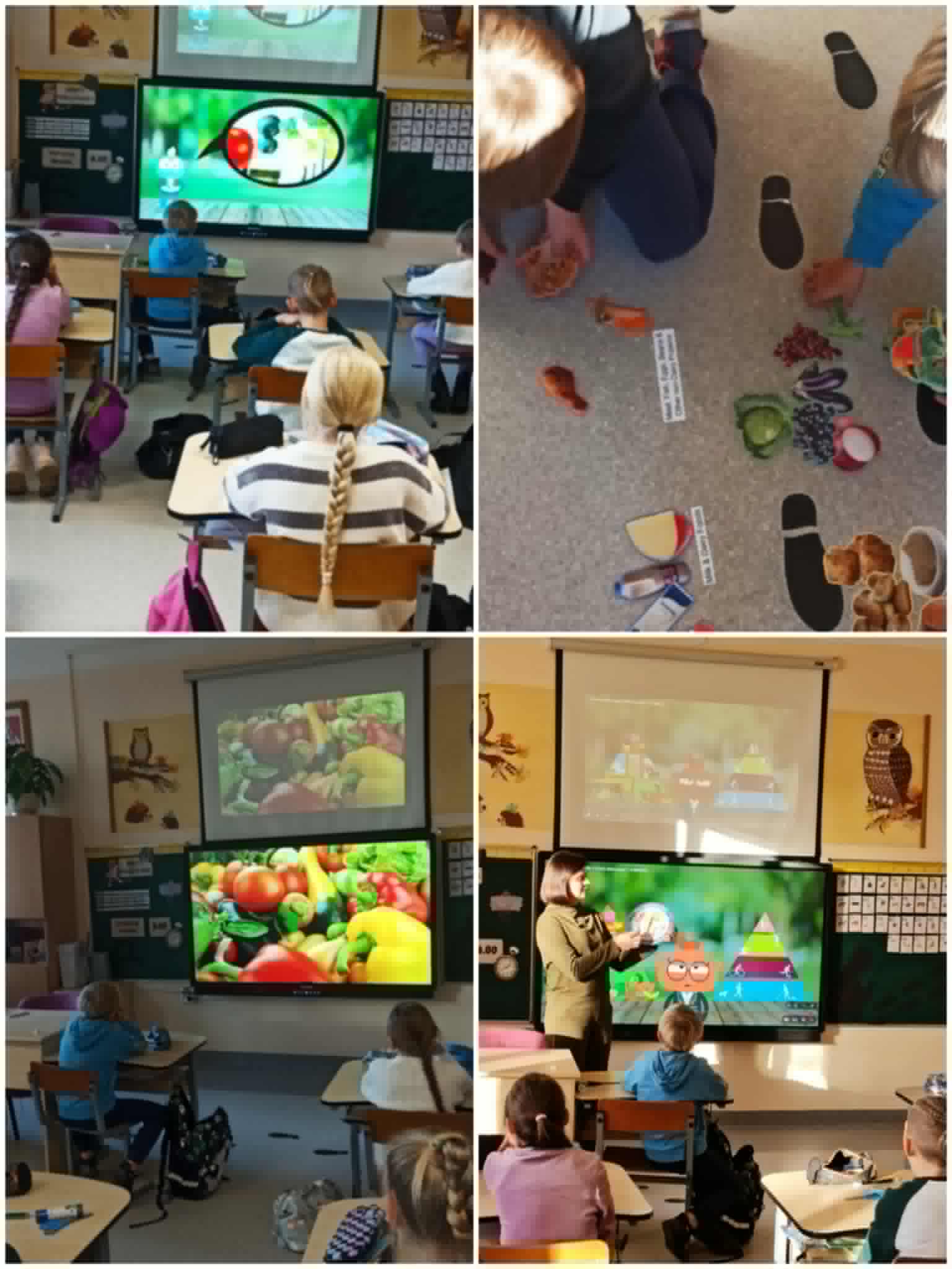 Aptarta kodėl svarbu maitintis įvairiai, kasdien valgyti daržovių ir vaisių, gerti pakankamai vandens. Analizavo sveikos mitybos lėkštės modelį, dėliojo mitybos piramidę bei susipažino su fizinio aktyvumo piramide. Po to visi kartu atliko trumpą mankštą-„aktyvų pertraukėlės iššūkį“. Vaikai energingai atliko pratimus pagal muziką, suprasdami, kad fizinis aktyvumas yra toks pat svarbus kaip ir sveika mityba. Mokiniai sutarė, jog nuo šiol stengsis kasdien valgyti daugiau daržovių ir daugiau judėti, bei rūpintis savo sveikata.