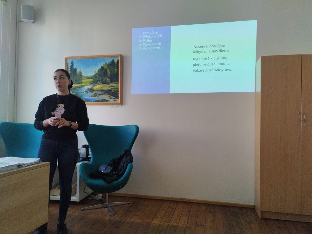 Mitybos temas pristato Rūta Balnionė – dietistė, turinti sveikatos mokslų profesinio bakalauro laipsnį, taip pat licencijuota sporto trenerė. Ji sukaupusi daugiau nei 12 metų patirtį dirbant su mitybos planavimu, kūno pokyčiais bei fiziniu pasirengimu. Pirmųjų užsiėmimų metu mergaitės susipažino su sveikatai palankios mitybos pagrindais, sužinojo apie mitybos balansą, energijos poreikį bei tinkamus pasirinkimus kasdienėje mityboje.